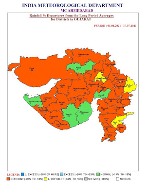 Overall, for Gujarat, good satisfactory rain in Coastal Gujarat Region, but deficiency may not be much reduced in rest this week.