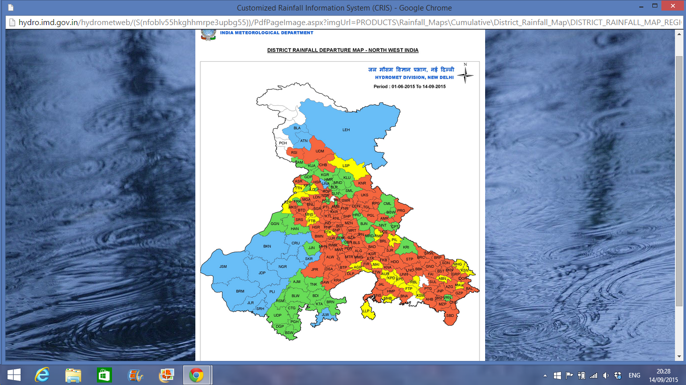 Top 15 rainfall of SWM 1st June - 12th September, 2015